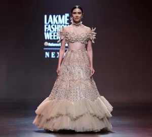 The overarching theme for this year’s edition was “Heritage Reimagined.” Designers paid homage to traditional crafts—zardozi, chikankari, bandhani, and gota patti—while reinterpreting them with structured silhouettes, metallic textures, and bold experimental layering. The focus was clear: honor the past, empower the present, and design the future.
