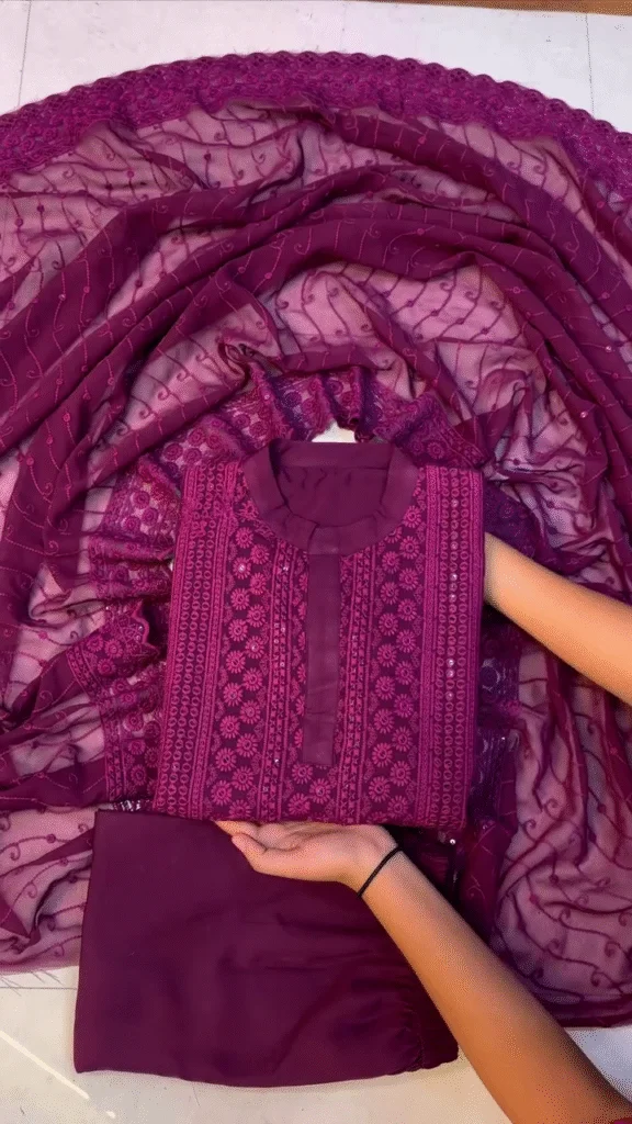 - Top Material: Premium Georgette with intricate Zigzag Woven Lines running throughout the fabric. Georgette is lightweight, breathable, and flowy, providing a graceful drape that complements all body types.