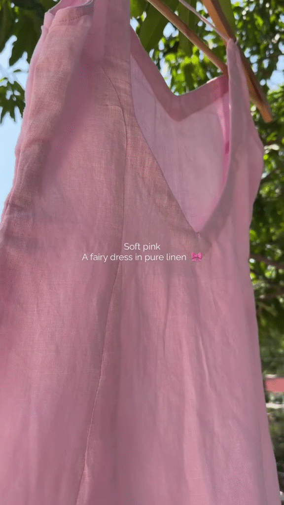 Drenched in a soft baby pink tone, this dress instantly gives off dreamy, romantic vibes. It’s crafted in a lightweight, breathable fabric—perfect for warm days, brunch outings, or casual soirées. The fabric falls gracefully on the body, offering a flattering yet relaxed silhouette.