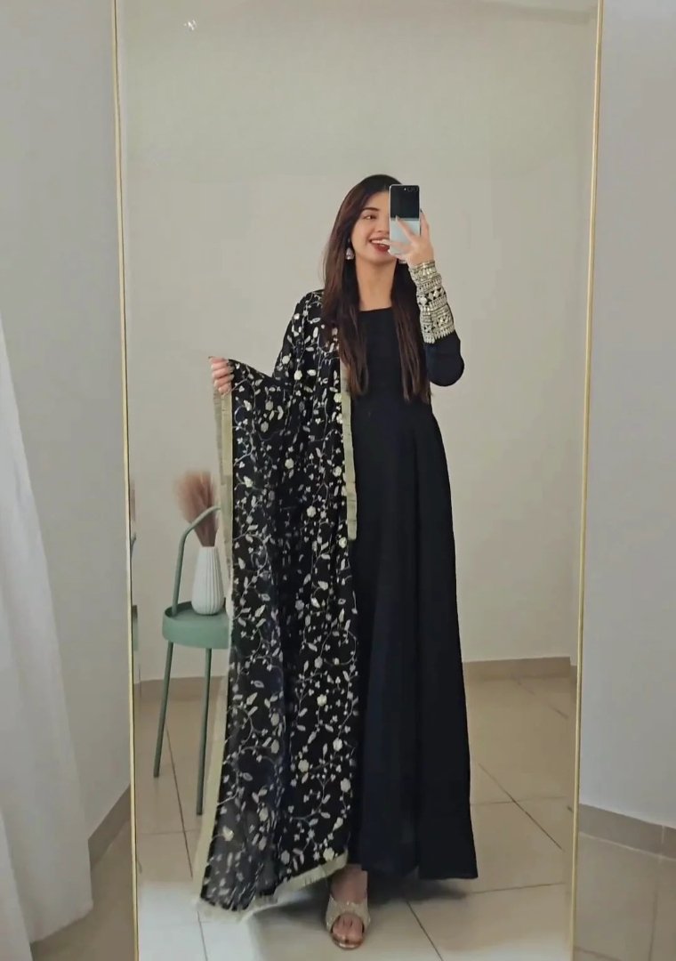 If you’re looking for a classy, versatile ethnic outfit that’s perfect for any occasion — this stunning black Anarkali suit set with a floral printed dupatta is a must-have in your wardrobe.