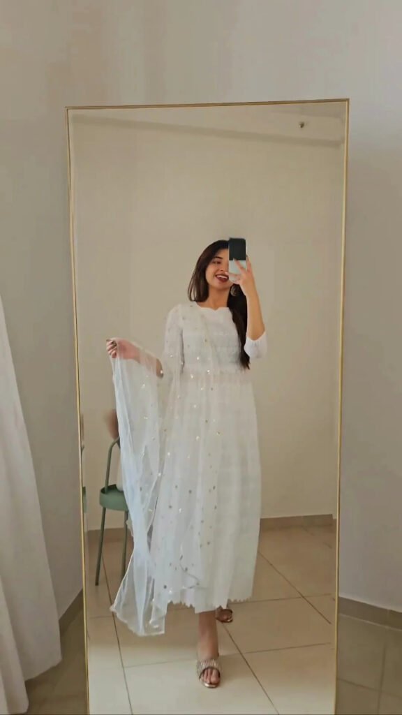 The overall silhouette is flattering and timeless, while the printed dupatta adds a chic, boho touch. Pair it with jhumkas, bangles, and kolhapuri sandals — and you’re ready to steal the spotlight!