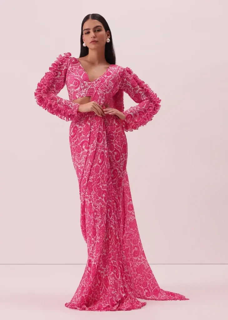 - Ruffle sarees with pre-stitched pallus