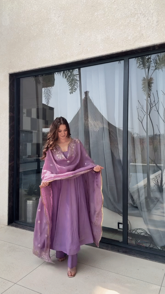 This lavender ethnic set is not just an outfit—it’s a mood. Light, fresh, and flowy, it’s perfect for those who believe elegance lies in simplicity. Add it to your wardrobe and let the compliments flow!