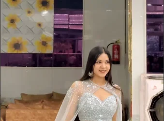 Overview: Drape yourself in pure elegance with the Noori Royale Designer Gown Set, crafted from luxurious Chinnon Silk and adorned