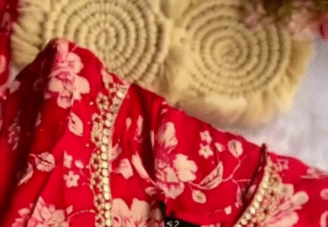🧵 Product Features:Radiant Crimson Bloom – A bold, eye-catching red canvas brought to life with soft blush floral prints for